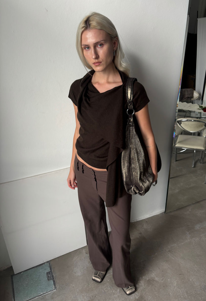 BROWN SWEATER WITH A SCARF